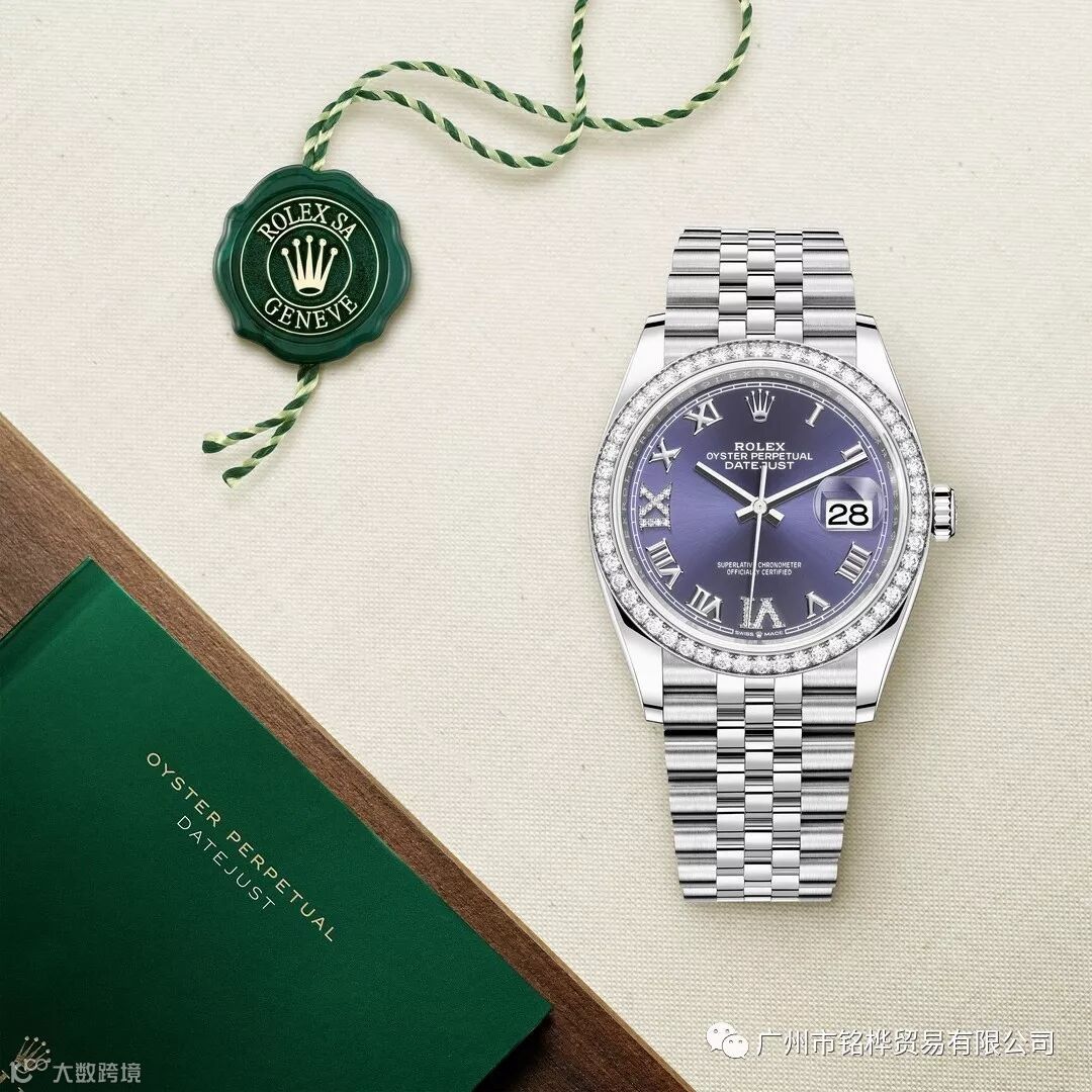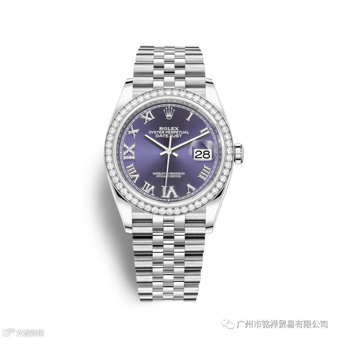 五格链节纪念型表带,专为1945年面世的蚝式恒动日志型腕表而设,经久而常新,纪念每一个传奇的时间节点。该款腕表更选用茄紫色表盘,18ct金VI和IX罗马数字钟点标记,外圈镶有24颗钻石,奢华闪耀,诠释紫色背后的浪漫情怀