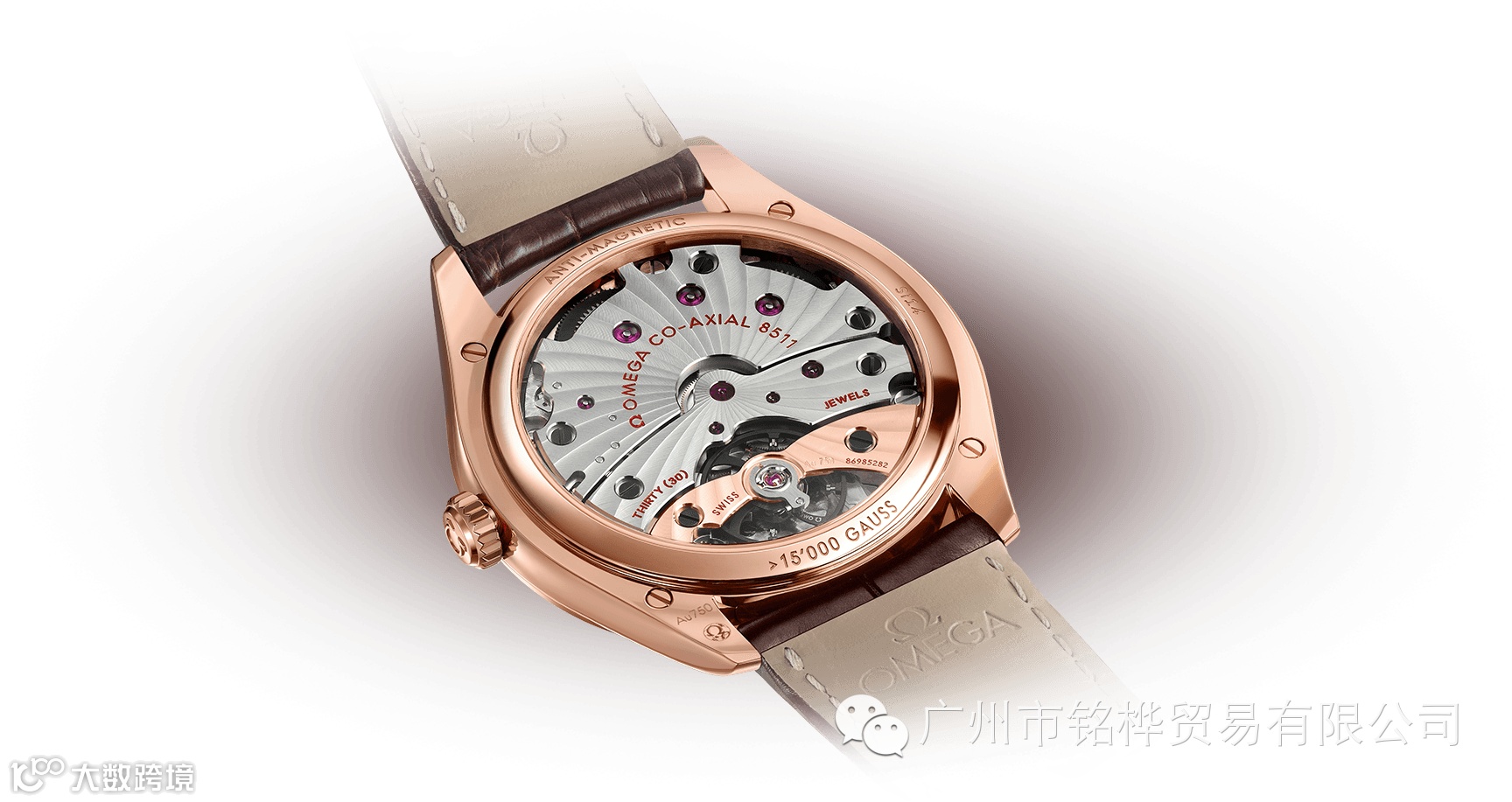 此款经官方认证的天文台表不但拥有与同轴机芯同样的精准走时,还可抵抗超过15000高斯的强大磁场。腕表的抛光表背上镌刻有“Anti-magnetic”(防磁)以及“15’000 Gauss”(15’000高斯)。透过弧拱型蓝宝石背透,欧米茄独有同轴机械机芯的运转美态清晰可见。