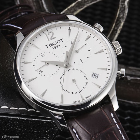 天梭俊雅系列腕表直径42毫米,纯白表盘搭配精钢表壳,太妃指针助力准确读时。三盘六针计时表盘,借助纤薄设计减轻腕部负担,满足对舒适工作状态的追求。