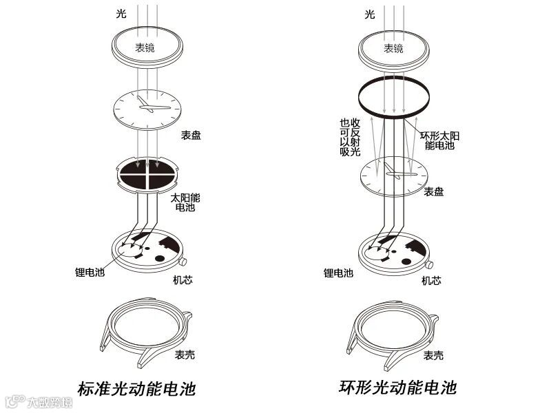 一种是目前常用的标准光动能电池,位于表盘下方,能够充分地将光源转化为电能。
