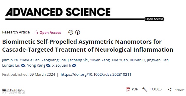 所有体外细胞、类器官模型和体内动物实验都证实了仿生自行纳米运动在精确靶向、脑深部穿透、抗炎和神经系统功能维持方面的有效性。因此,本研究介绍了一个具有炎症靶向能力和 主动深度穿透的仿生自推进纳米马达平台,用于治疗神经系统炎症疾病。