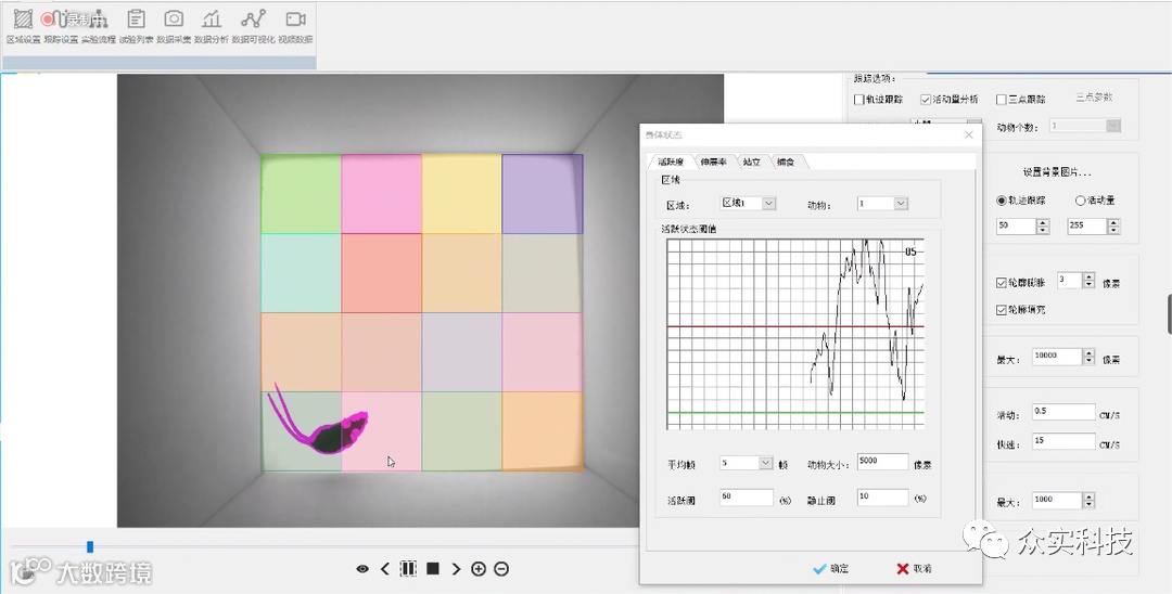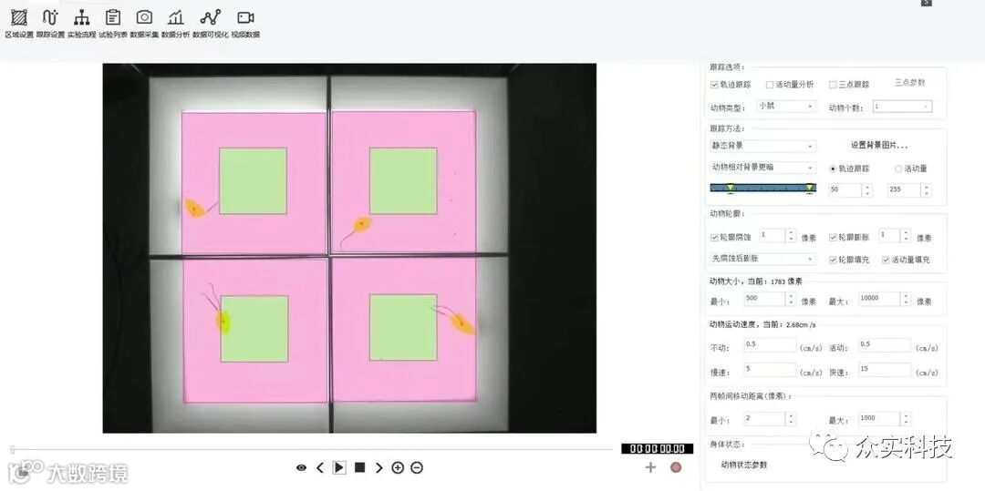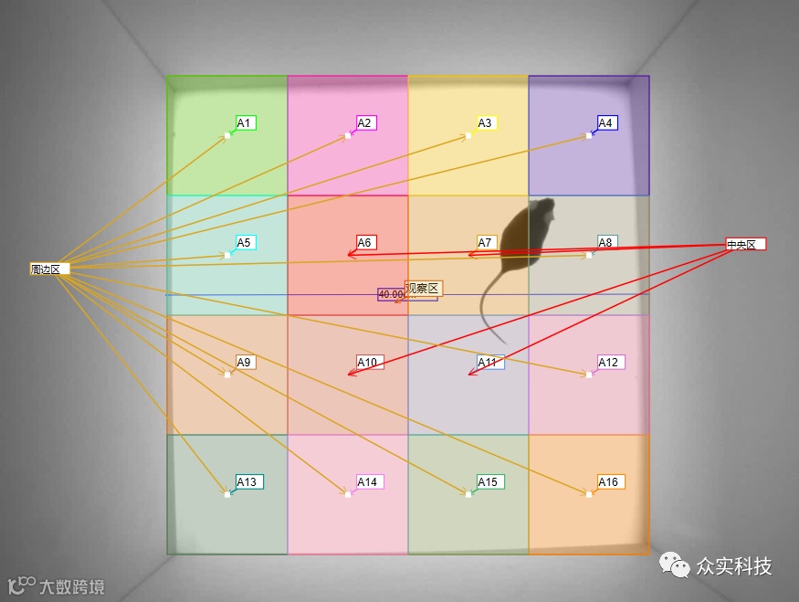 旷场实验是观察研究动物神经精神变化、进入开阔环境后的各种行为。一次实验就可以对动物的自发活动、探索行为及焦虑、抑郁状态进行定量评价,在药物的研发与开发中得到广泛的应用。