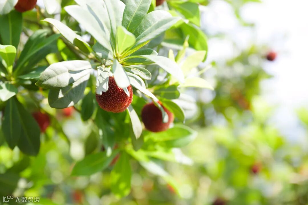 正谷生态杨梅基地,阳光下的杨梅正在成熟转色