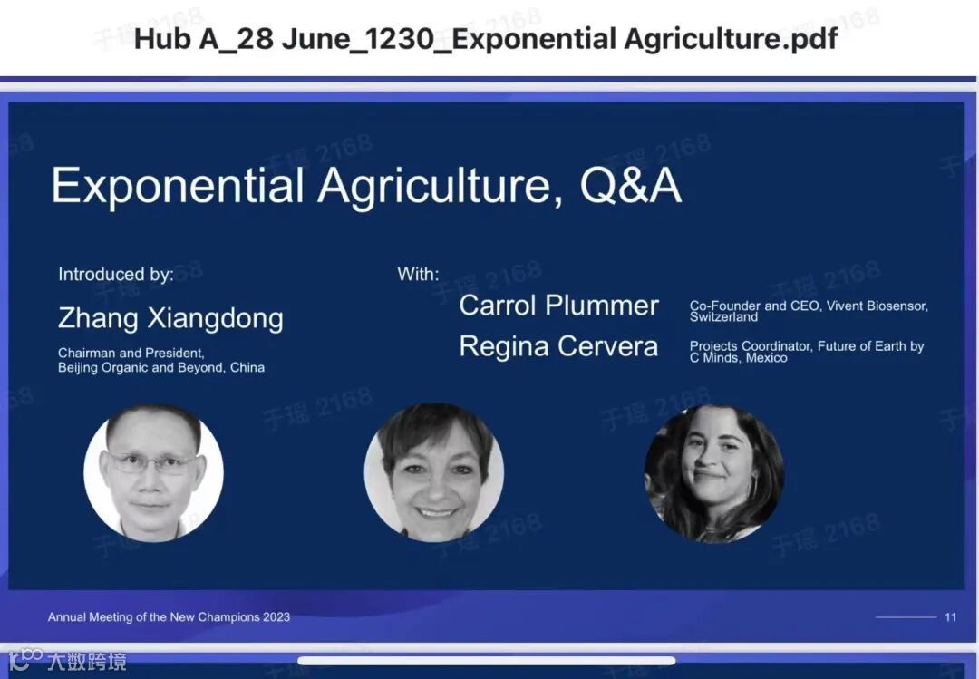 张向东主持夏季达沃斯论坛“指数型增长农业”Hub