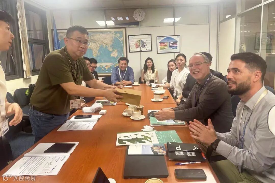 2月28日,UNEA-6日程第三天,阿拉善SEE与联合国环境署(UNEP)座谈会:早期预警和评估司、气候变化司、生态系统司、工业和经济司,刘健司长、Mirey Atallah、Doreen Robinson、Steven Stone、Maarten Kappelle and Pierre,阿拉善SEE会长周洲等出席。张向东以正谷碳中和有机月饼为产品示例,做主题发言“有机食品在中国,正谷商业案例实践”。周洲会长向第78届联合国大会主席Dennis Francis等赠送正谷古树茶。