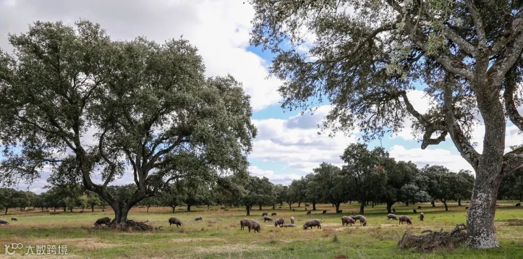 Dehesa不仅是伊比利亚猪的乐园,还是伊比利亚猞猁、帝鹰等当地标志性动物活动、觅食的地方。这种多生物共生系统避免了传统牧业或种植业对非经济生物带来的伤害,与周围环境的平衡,让其对同一空间的生物更加友好。