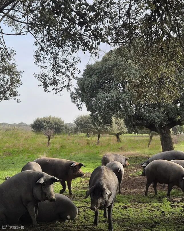 伊比利亚猪被西班牙人称为“the King of Dehesa”[4]。从每年10月开始到来年2月,北半球西班牙广阔的Dehesa,圣栎木与无梗花栎的果实-橡果逐渐成熟掉落,而这正是伊比利亚黑猪钟爱的食物。
