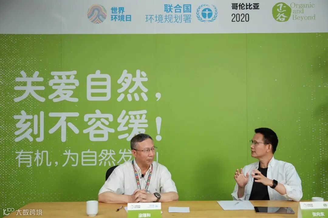 2020年6月5日,世界环境日。正谷张向东与联合国环境署首席驻华代表涂瑞和面对面,交流人类与生物多样性的关系,探讨有机可持续对环境保护的积极意义。