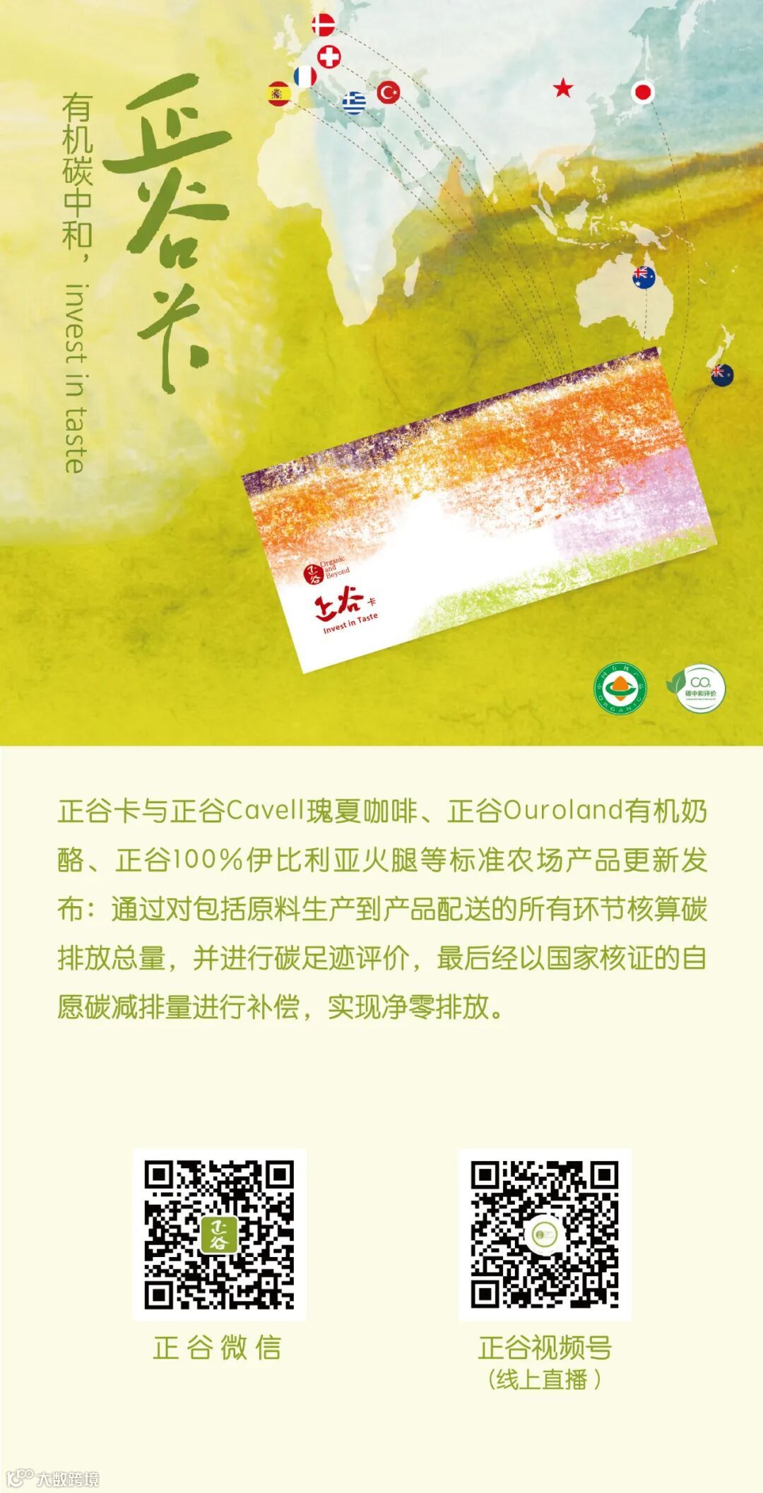 11月5日-10日,正谷&IFOAM国际有机联盟(IFOAM - OI)联合参展第四届中国国际进口博览会:“正谷Cavell瑰夏咖啡可持续实践”、“正谷Ouroland有机奶酪,Invest in Taste”、“生物多样性&利于生态的商业模式”、“碳中和下的可持续发展”、“正谷&IFOAM五年合作计划”等主题活动探讨以有机助力碳中和、助力生物多样性保护。从原料生产到产品配送实现净零排放的正谷卡与正谷标准农场产品、践行可持续生产的正谷Cavell瑰夏咖啡也将更新发布,敬请关注。