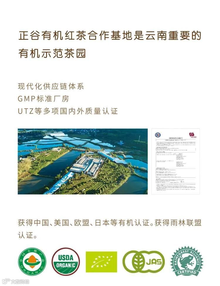 正谷特级有机红茶,择选云南省普洱市无量山脉有机茶园为合作基地,以有机生产方式获取大叶种茶树嫩芽,并经传统滇红茶制作方式,与您分享这一份有机好礼。正谷特级有机红茶,与正谷标准农场所生产的Ouroland奶酪、Cavell巧克力等共同汇集于正谷卡上:呈上自然美味,表达美好情感。