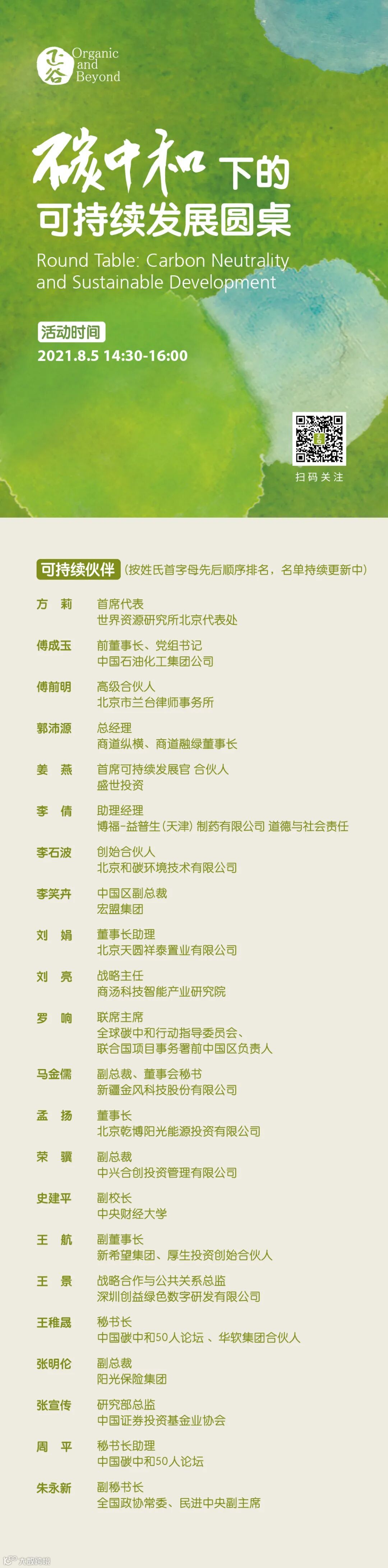 导读:2021.8.5,14:30~16:00,碳中和下的可持续发展圆桌对话