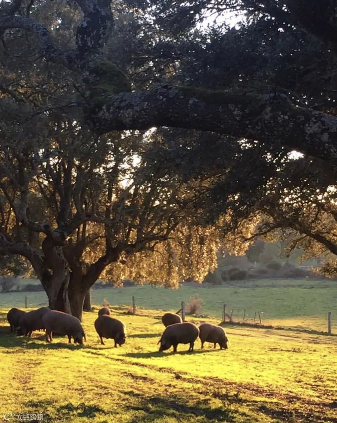 正谷伊比利亚火腿选用的是西班牙南部的100%纯种伊比利亚黑猪。黑猪生活在联合国教科文组织所划定的生物圈保护区[2]——Las Dehesas de Sierra Morena内,这里是人类开垦土地与自然保持平衡的农业森林植被系统,广阔无垠的土地上,粗放式的种植着谷物和牧草,橡木、栎木疏落的生于其间,形成多样的生态系统,包括伊比利亚猪在内的许多极具地中海代表意义的动物种群能够在此繁衍生息。
