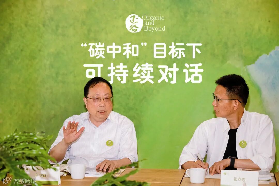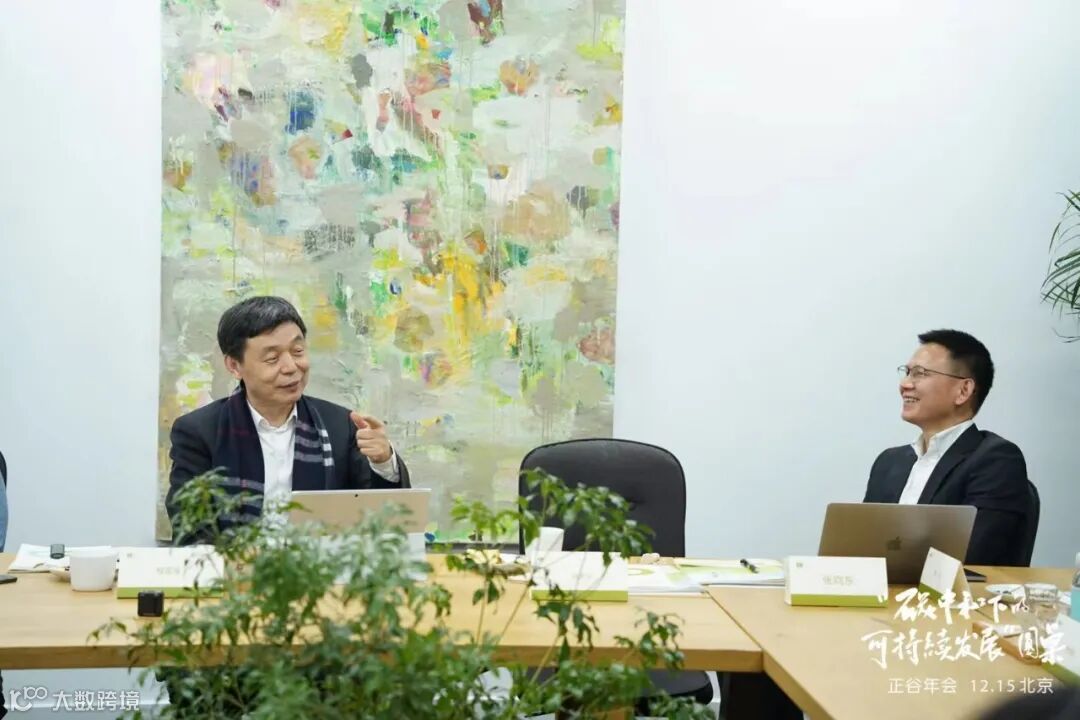 2021年度活动“碳中和下的可持续发展”圆桌对话,正谷与傅成玉、车文毅、许浩、徐永光、刘明康等老师交流有机碳中和的业务探索。
