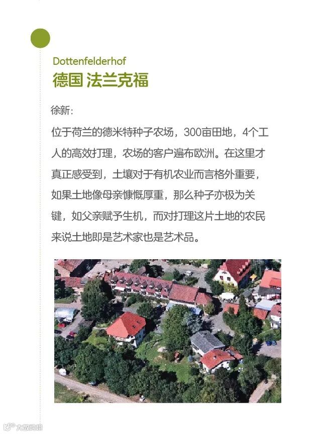 此次IFOAM欧洲有机游学,到访包括德国Hermannsdorf有机农场、德国Demeter有机农场、德国Kassel大学有机农业学院、德国BIO HOTELS有机旅馆、欧洲有机农业研究所FiBL瑞士总部以及世界有机农业运动联盟IFOAM德国波恩总部,来听徐新解读他的欧洲有机农场第一印象吧。