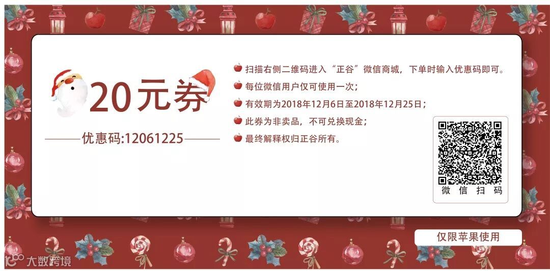 在生活开启hard模式的冬天,圣诞谷暖心地为小伙伴们准备了双倍惊喜:1.领取下方满198减20的正谷苹果优惠券~买买买千万不要错过👇