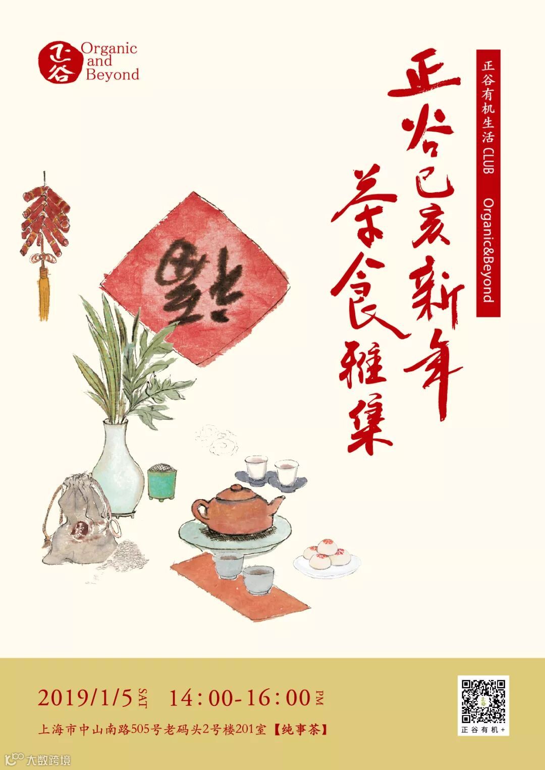 2019新年的第一个周六,正谷 x 纯事茶邀请小伙伴们参加有机生活club第二弹:一场小而美的新年茶会即将开启。