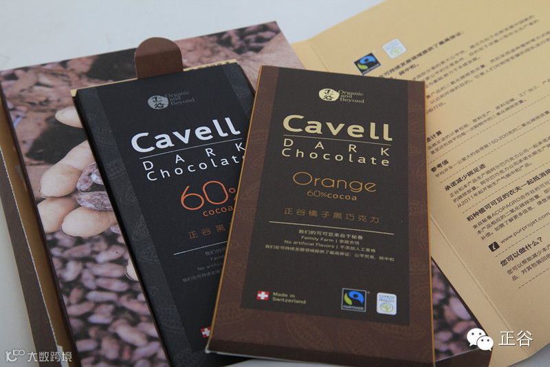 正谷瑞士Cavell巧克力,遵循"公平贸易"原则,可可豆原料来自秘鲁,家庭农场生产。通过植树造林的方式吸收巧克力生产过程中CO2排放量,从而达到碳中和。