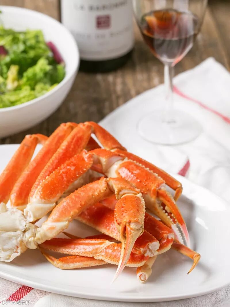 2、阿拉斯加雪蟹:阿拉斯加雪蟹捕捞后在船上煮熟并快速冷冻。蟹肉加在沙拉、汤或其他菜品中,肉甜汤鲜。