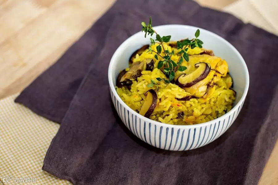 藏红花香菇鸡饭