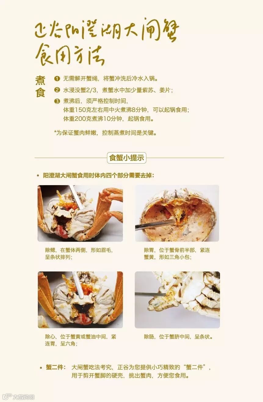 在蟹扣上标明的官方渠道,如拨打查询电话以及登陆网站等,输入锁扣中防伪数码查验真伪,以保证享受到生态养殖的正谷阳澄湖大闸蟹。