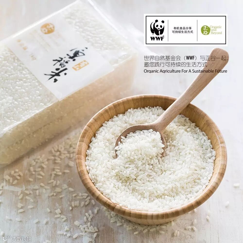 正谷有机原稻米、有机红茶、有机粽、有机月饼、有机年糕,使用WWF和正谷联合品牌LOGO。