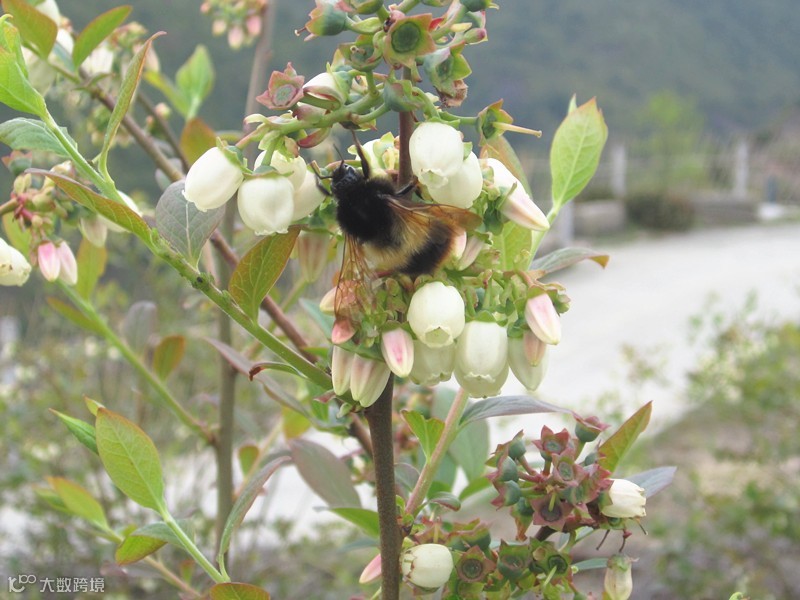 形态特征:蓝莓的花为总状花序。花芽先萌动3~4周后到盛花期。当花芽萌发后,叶芽开始生长,到盛花期时叶芽才萌发生长到其应有的长度。
