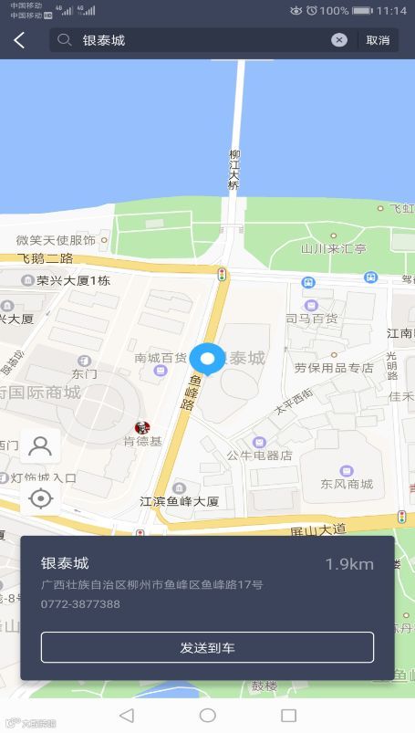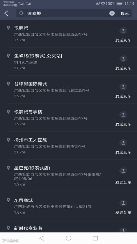 点击【发送到车】,即 将目的地位置发送到车机导航