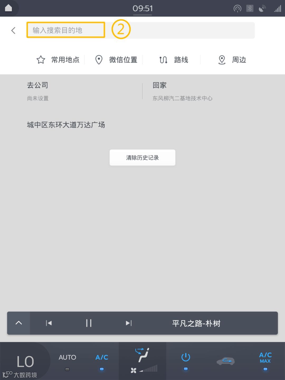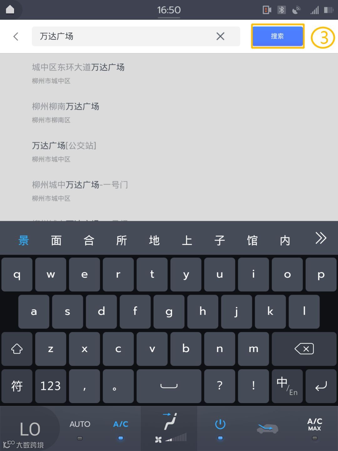 进入车机主界面,在右上角点击【搜索地点】