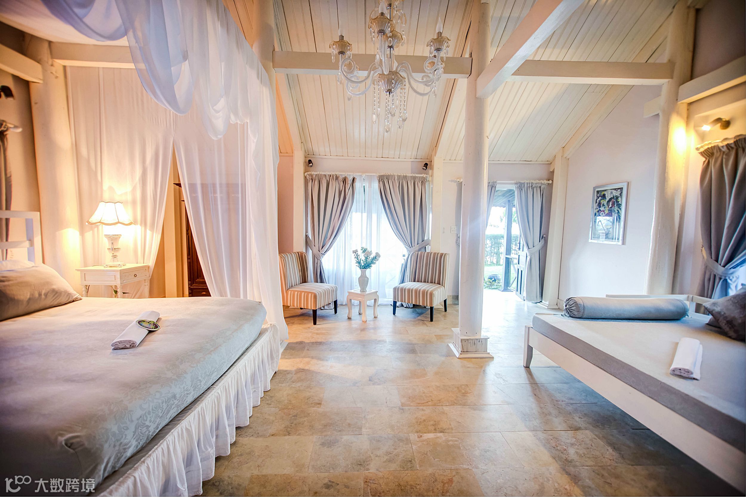 酒店的床都是使用再生木手工制作,并铺有鸭羽绒寝具和100%纯棉床单。