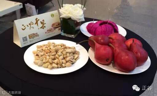 晚宴前正谷提供了正谷进口干果与正谷有机水果作为cocktail的小食,朱晓明和刘吉院长来到正谷展台前试吃正谷有机红星梨的时候,都说 “这梨的口感很是特别,大家都来尝尝看”,各位校友试品尝之后表达了对正谷食材的赞赏。