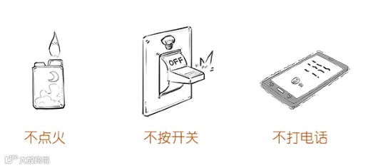 ✔ 不在室内拨打电话、穿脱带有静电衣物、不触碰任何电子产品。