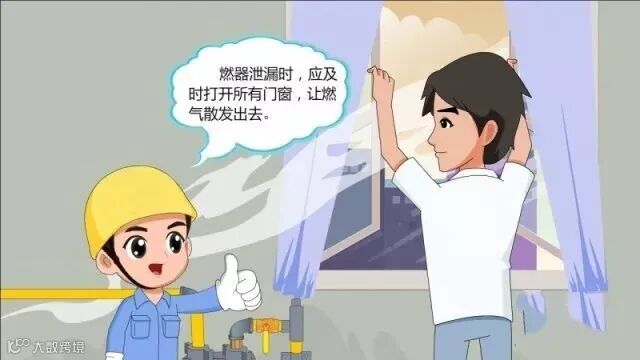 接着,打开所有门窗,让天然气散发到室外;