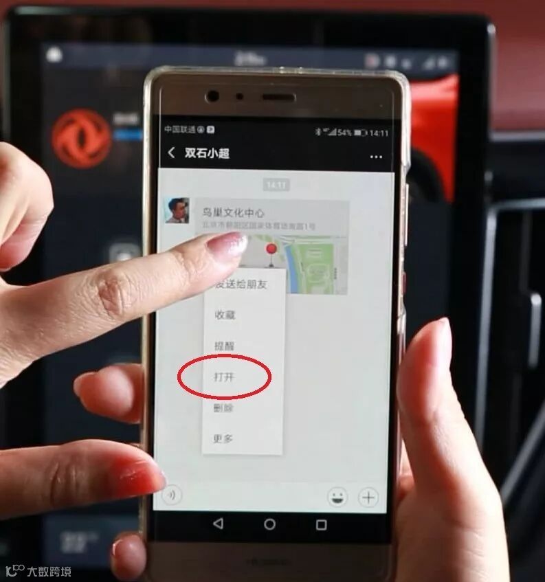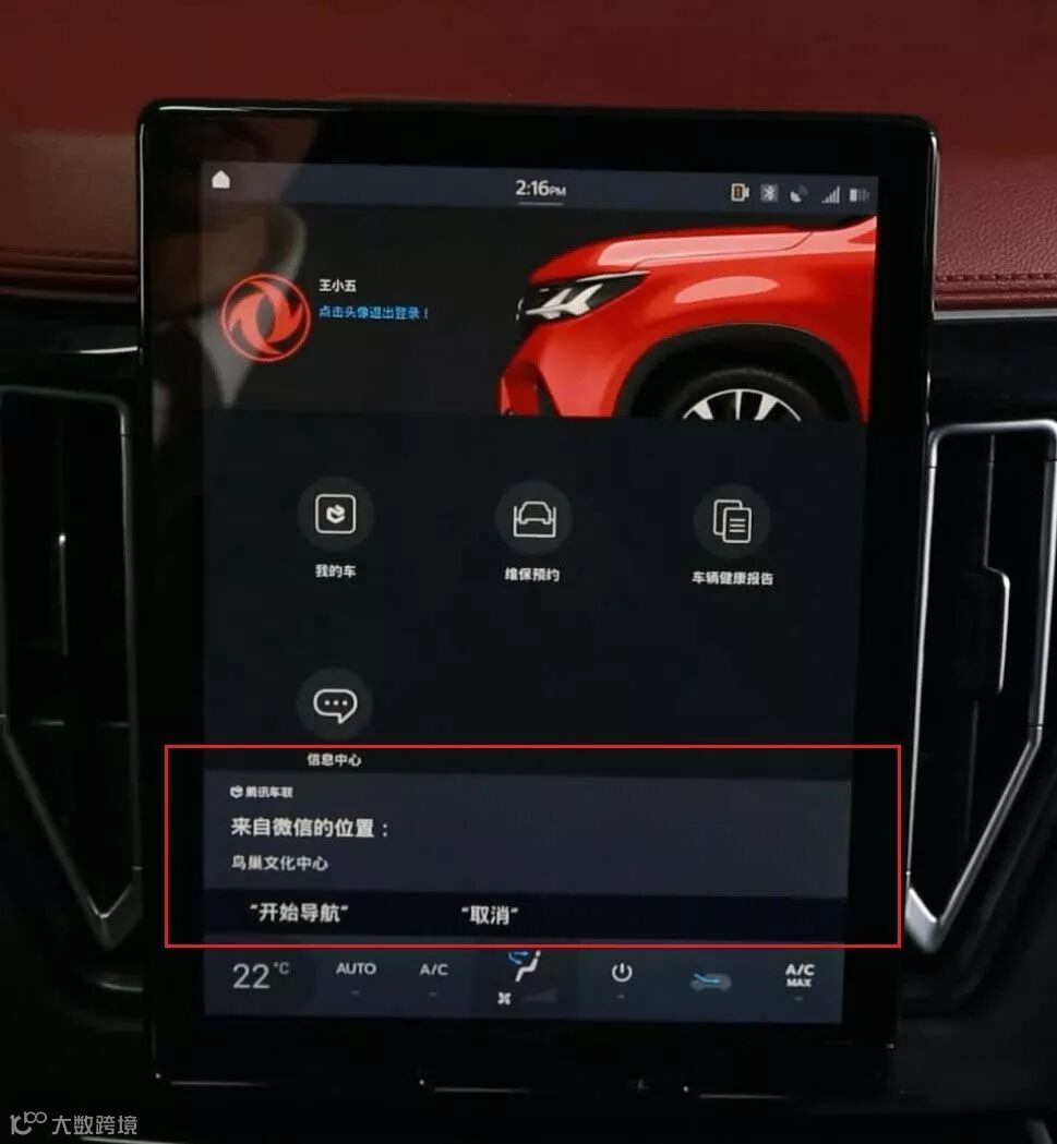 显示发送成功后,将能在车载中控大屏上收到提示。