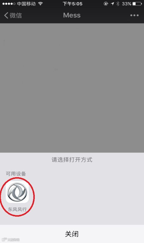 出现打开方式选项,选择可用设备“东风风行”。