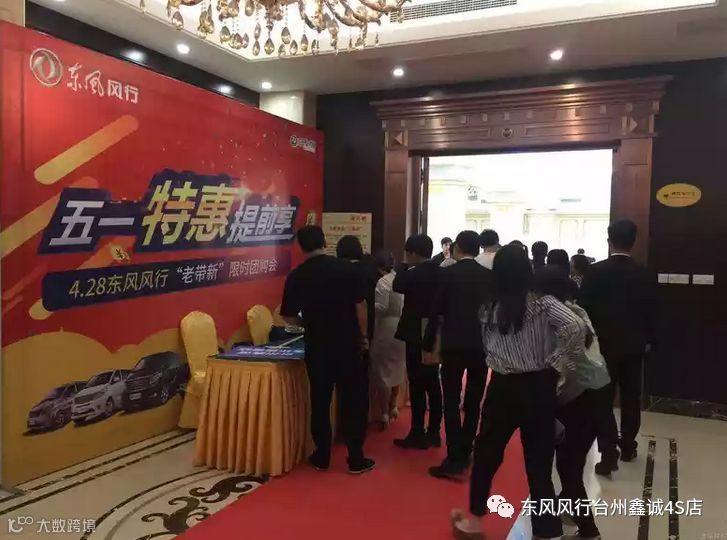 2018年4月28日下午2:30-4:30,台州鑫诚东风风行携手太平洋汽车网举办的五一特惠提前享4.28台州东风风行限时团购会活动圆满落幕!台州鑫诚经销商为了最大的回馈客户朋友一直以来对东风风行的支持与厚爱,除了车型的价格优惠,主办发还准备了超多的礼品回馈客户,实打实为客户提供优惠,订车循环抽奖,可重复拿奖;凭意向金来现场签到即赠送的空调被一份还赠送天堂伞一把,绝不让你空手而归。最终现场成交20台圆满落幕,祝所有订车客户福气满满,用车愉快!接下来就看下现场精彩的活动回顾。