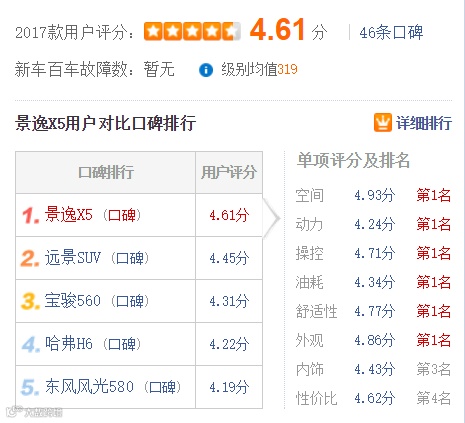 汽车之家用户对比口碑排行第一~