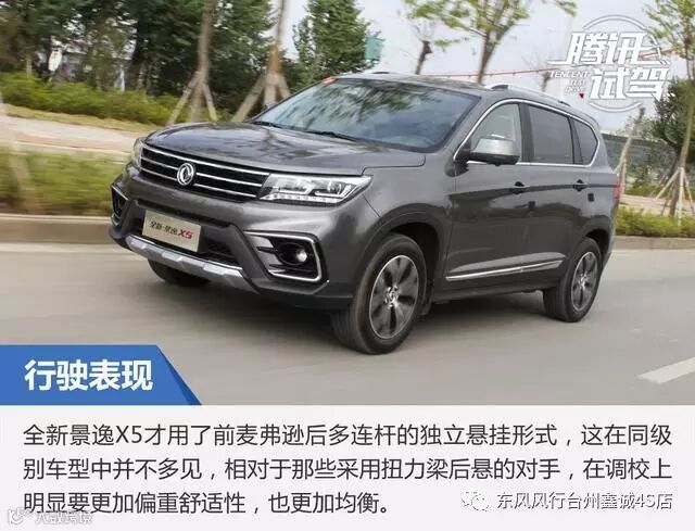 全新景逸X5才用了前麦弗逊后多连杆的独立悬挂形式,这在同级别车型中并不多见,相对于那些采用扭力梁后悬的对手,在调校上明显要更加偏重舒适性,也更加均衡。