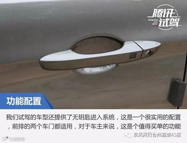 我们试驾的车型还提供了无钥匙进入系统,这是一个很实用的配置,前排的两个车门都适用,对于车主来说,这是个值得买单的功能。