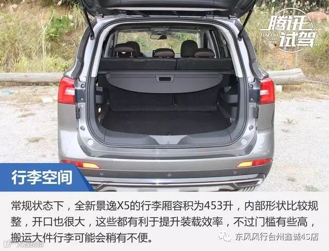 常规状态下,全新景逸X5的行李厢容积为453升,内部形状比较规整,开口也很大,这些都有利于提升装载效率,不过门槛有些高,搬运大件行李可能会稍有不便。