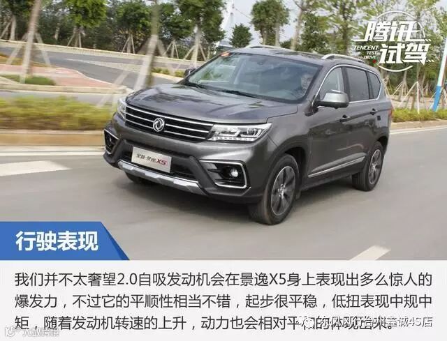我们并不太奢望2.0自吸发动机会在景逸X5身上表现出多么惊人的爆发力,不过它的平顺性还是相当不错的,起步很平稳,低扭表现中规中矩,随着发动机转速的上升,动力也会相对平和的体现出来。