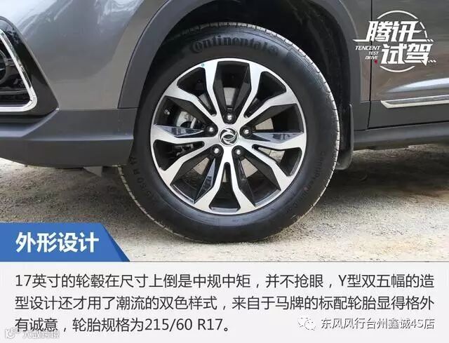 17英寸的轮毂在尺寸上倒是中规中矩,并不抢眼,Y型双五幅的造型设计还才用了潮流的双色样式,来自于马牌的标配轮胎显得格外有诚意,轮胎规格为215/60 R17。