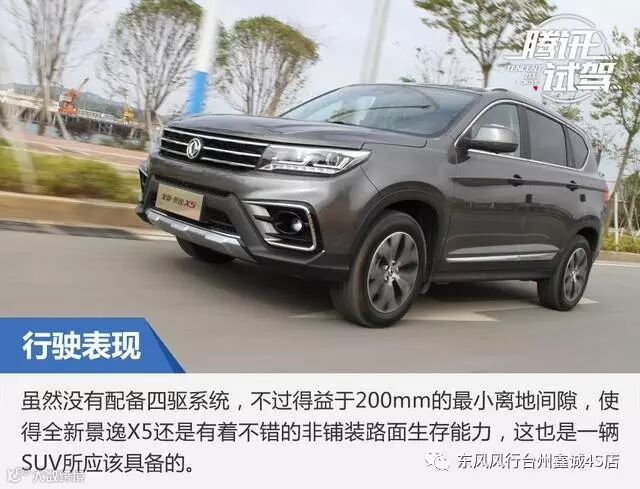 虽然没有配备四驱系统,不过得益于200mm的最小离地间隙,使得全新景逸X5还是有着不错的非铺装路面生存能力,这也是一辆SUV所应该具备的。