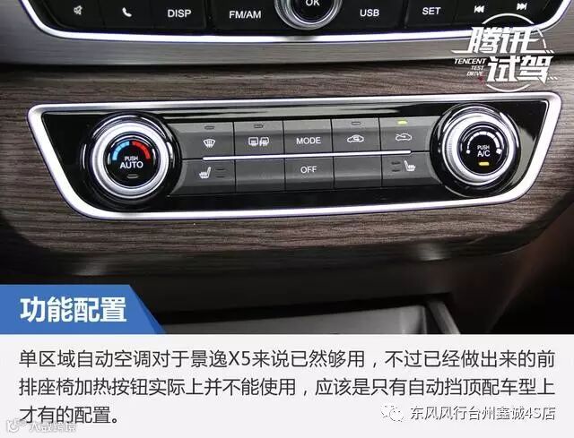 单区域自动空调对于景逸X5来说已然够用,不过已经做出来的前排座椅加热按钮实际上并不能使用,应该是只有自动挡顶配车型上才有的配置。