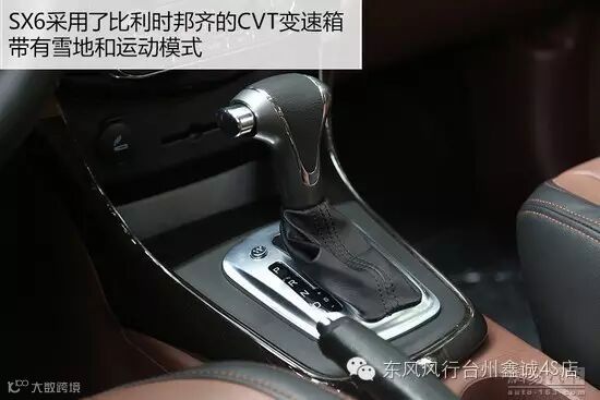 风行SX6提供了两种动力组合,2.0L+5MT和1.6L+CVT,折在该别SUV车型中算是比较丰富的,相比较同级别很多车型只配备了MT变速箱来说,风行SX6有着比较明显的优势,毕竟主打城市家用来说,CVT变速箱对于城市行驶的舒适性要强于MT,并且与之匹配的1.6L发动机还能够享受小排量购置税减半的优惠政策,相信如果价格合适的话,1.6L车型会成为未来风行SX6的主销车款。