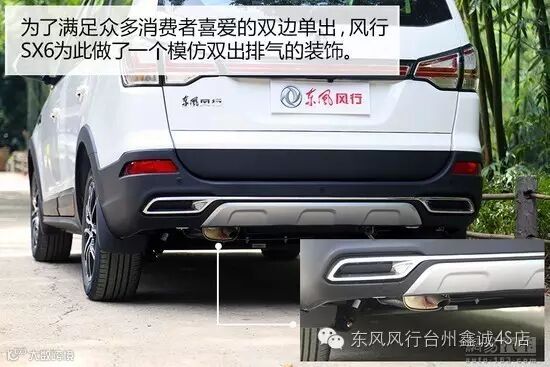 基于轿车底盘开发而来的风行SX6并不会像幻速S3和CX70那样多少带点微车的既视感,底盘高度与车身造型都是名副其实的SUV特征,虽然加入了第三排座椅,但是风行SX6C柱以后的造型并没有给人臃肿的感觉,整体车身看起来比较协调。