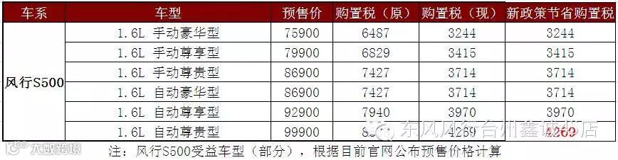 在“用心成就美好生活”的品牌理念下,节能减排、经济省油的小排量车型始终都是自主乘用车黑马东风风行的主推车型。国务院最新发布的对购买1.6升及以下排量乘用车实施减半征收车辆购置税的优惠政策,覆盖了东风风行4大系列共计30余款车型,可为用户节省4397元。