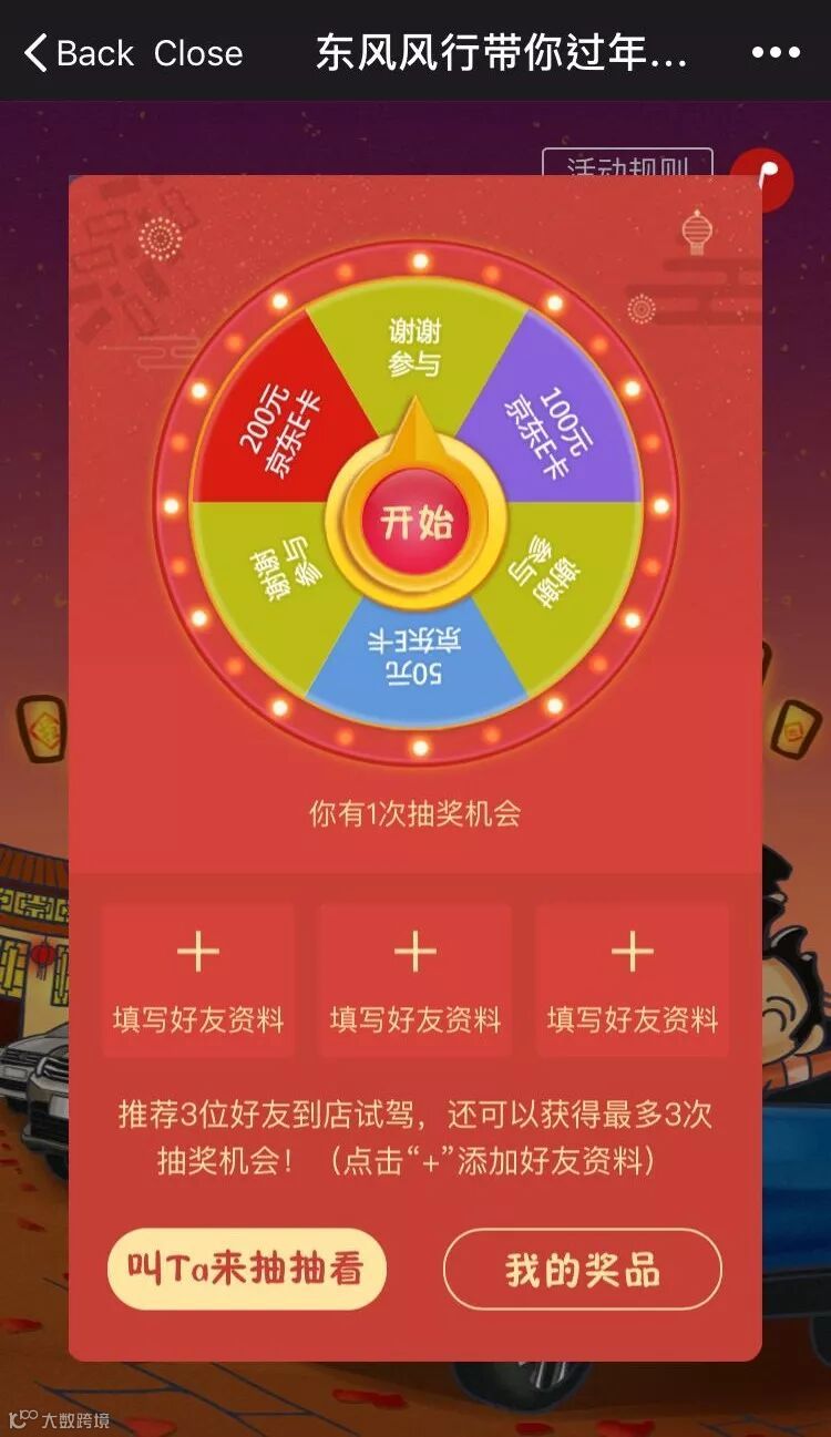 风行车主推荐好友到店试驾, 留资好友于3月31日前到店试驾后,向东风风行官方微信公众号后台发送试驾姓名+电话、转介绍人姓名+电话,接待销售顾问姓名+电话,以及试驾照片,经后台核实后,留资风行车主及试驾好友均可额外获得100元购物卡1张(共计1000份),先到先得!得到它就可以去京东商城愉快地买、买、买了!