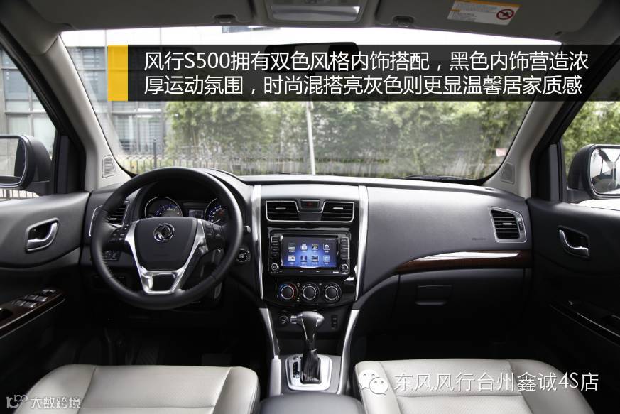 风行S500拥有双色风格内饰搭配,黑色内饰营造浓厚运动氛围,时尚混搭亮灰色内饰则更显温馨居家质感。