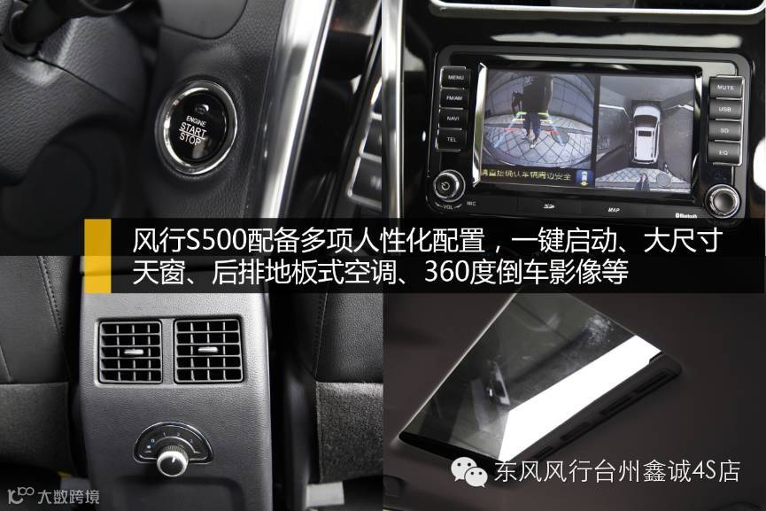 同时,风行S500还充分考量大众的驾驶习惯,将大部分按钮位置设计于驾驶位两条平行线上,减少误操作几率。此外,其还配备了大尺寸天窗、后排地板式空调、360度倒车影像等,带来人性便利和舒适享受的同时也进一步提升了行车安全。