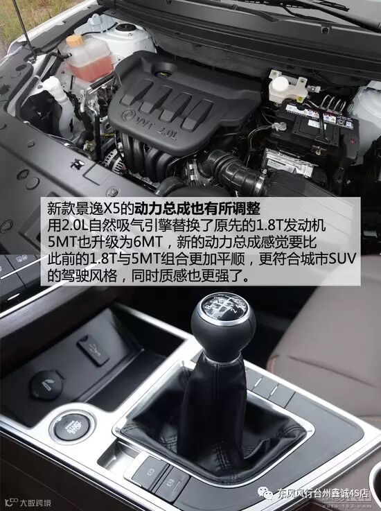 相比老款车型,新的 6MT 变速器在质感上有了很大的提升,改善了换挡之间的生涩感,并且离合的契合点较长,这样的好处就是不容易熄火,总体而言全新的景逸 X5 是一款很好上手的车型。